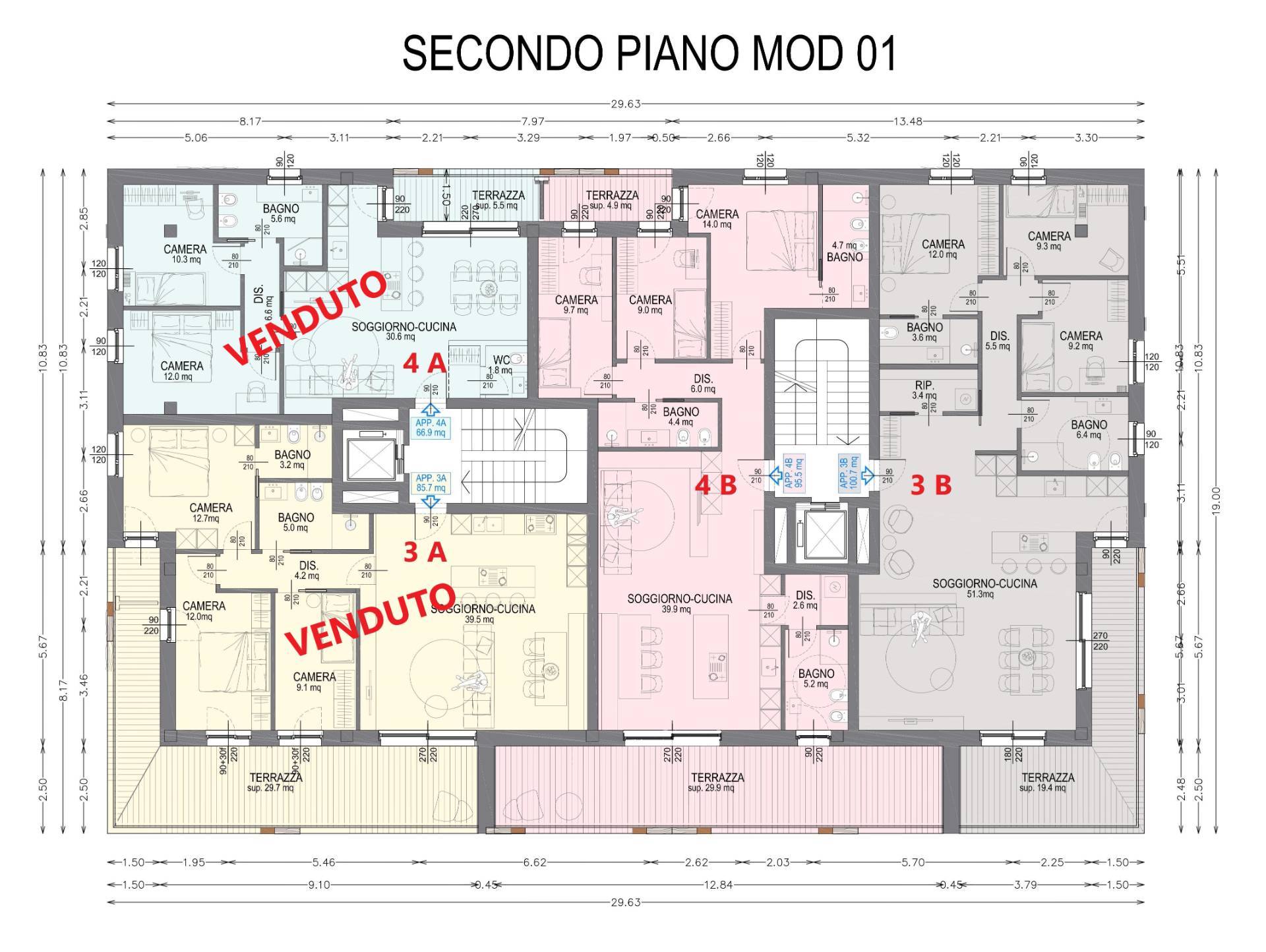 Il nuovo fabbricato sarà composto da cinque livelli fuori terra comprendenti sedici unità abitative con accesso distribuito su due distinti vani scala comuni.