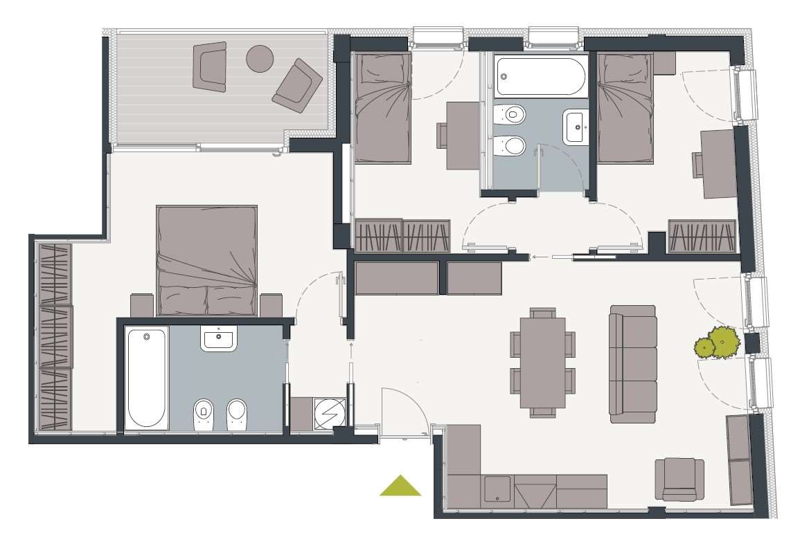 A pochi passi da piazza Fiera, in residenza esclusiva CLASSE A, appartamento con terrazza. L'appartamento si compone di ingresso che affaccia direttamente sella spaziosa zona soggiorno con cucina a vista, zona notte con due camere singole e bagno finestrato, terza camera padronale con bagno riservato e spazio cabina armadio.