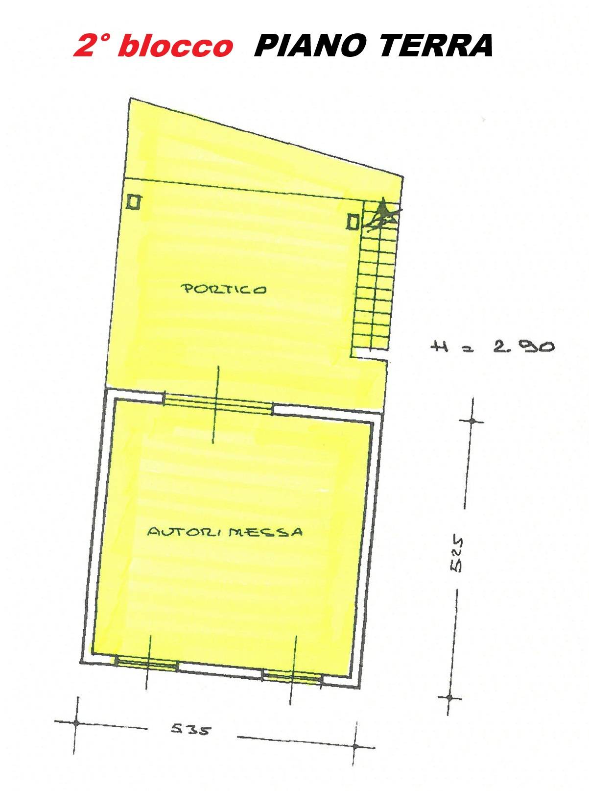- Piano Terra: piazzale posteggi e deposito/garage.